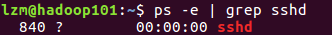 所以使用ps -e | grep ssh来查看是否有sshd进程,如果没有出现类似下图的信息,那么说明server没启动,通过命令 /etc/init.d/ssh -start 来启动server进程,如果提示ssh不存在 那么就是没安装server