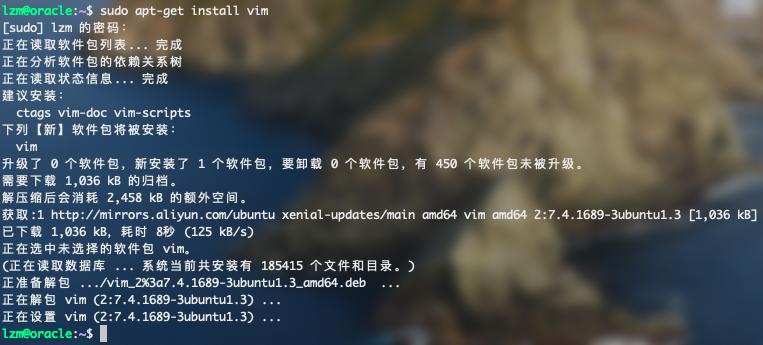 sudo apt-get install vim等待它自动安装即可