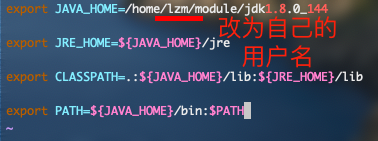 export JAVA_HOME=/home/lzm/module/jdk1.8.0_144