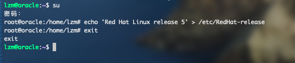 suecho 'Red Hat Linux release 5' > /etc/RedHat-releaseexit